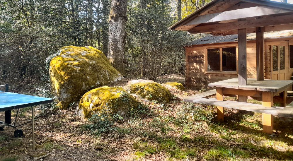 Vivre perché dans les arbres est une expérience fantastique, mais il faut néanmoins pouvoir reposer les pieds sur terre de temps à autre, que ce soit pour diner ou déjeuner dans un espace plus large à l’intérieur ou à l’extérieur, préparer à manger sur la plancha, ou accéder aux diverses activités ludiques que nous mettons à votre disposition, tels que la pétanque, le pingpong, une tyrolienne et un toboggan pour les plus petit. Vous pouvez improviser un match de badminton ou plus simplement préparer votre prochaine randonnée.